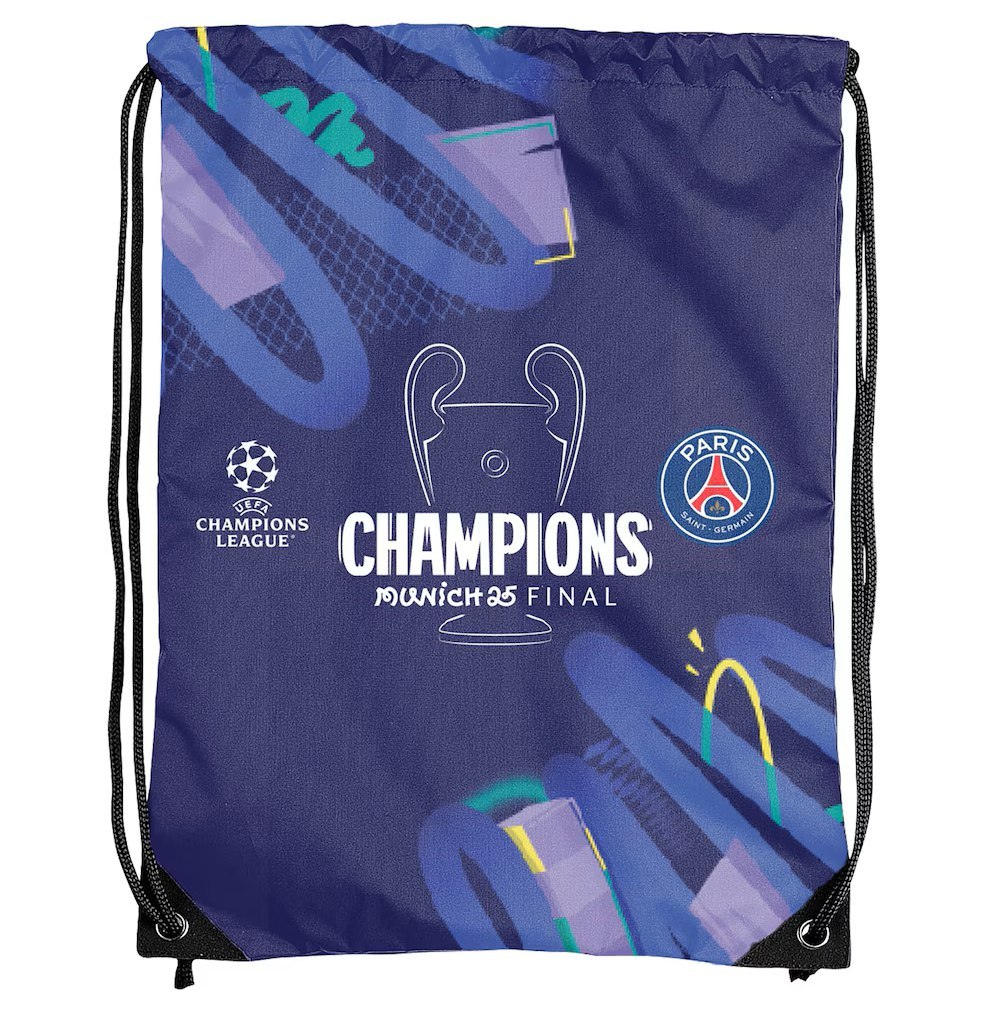 This PSG Champions of Europe 2025 sports bag is a stylish and practical shoe bag. Made from durable polyester, it features the official club crest and a special "Champions of Europe 2025" design, celebrating a historic victory. Its main compartment is ventilated to prevent odor, while an additional zip pocket keeps small items secure. The adjustable shoulder strap ensures a comfortable carry.