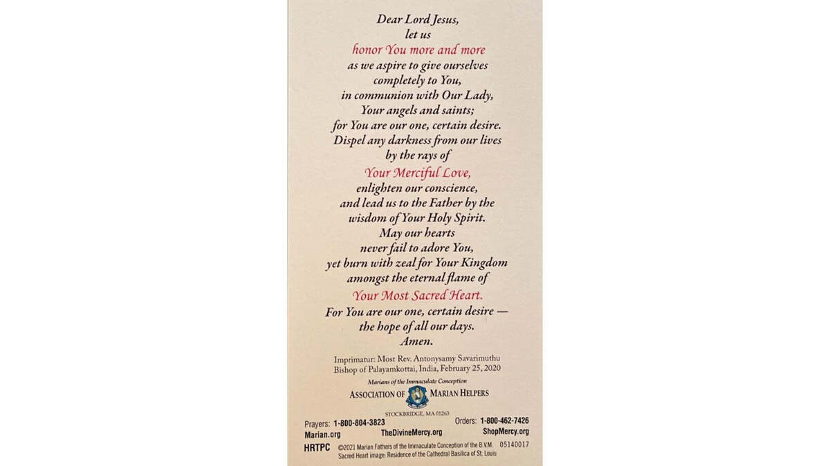 - Sacred Heart of Jesus Prayer Card 5 Pack