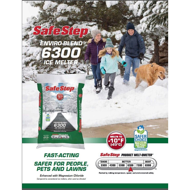 Safe Step 6300 EnviroBlend is safer to people, pets and vegetation when used as directed, but has a melting power that outperforms other ice melter blends. The patented formula contains a out powerful melting catalyst MG104, which helps prevent refreezing up to 2 1/2 times longer than conventional products.