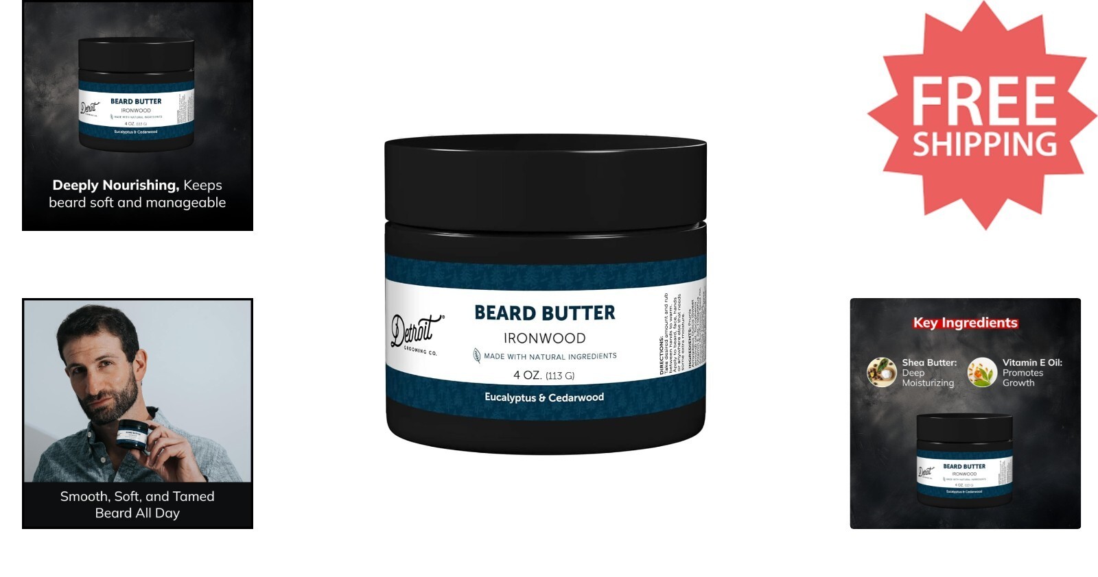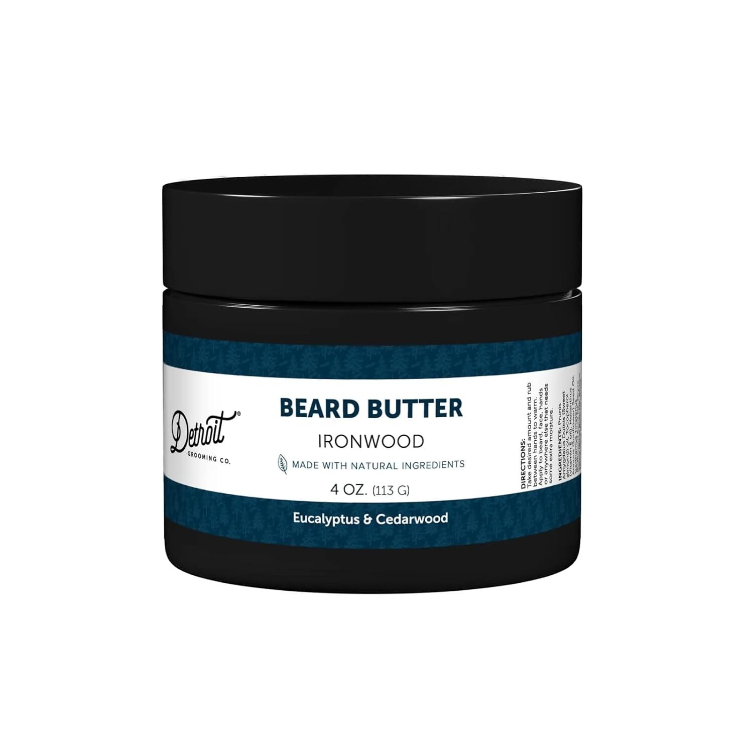 Our beard butter, enriched with safflower oil and shea butter, offers deep conditioning and hydration for a soft, smooth, and itch-free beard. Formulated to strengthen and nourish, it promotes a fuller, healthier growth while reducing breakage and dryness. Effortlessly style and tame flyaways with a natural hold, all wrapped in the warm, masculine aroma of ironwood?a blend of cedarwood and amber. Proudly crafted in Detroit with ingredients, our grooming products ensure lasting quality and excellence.