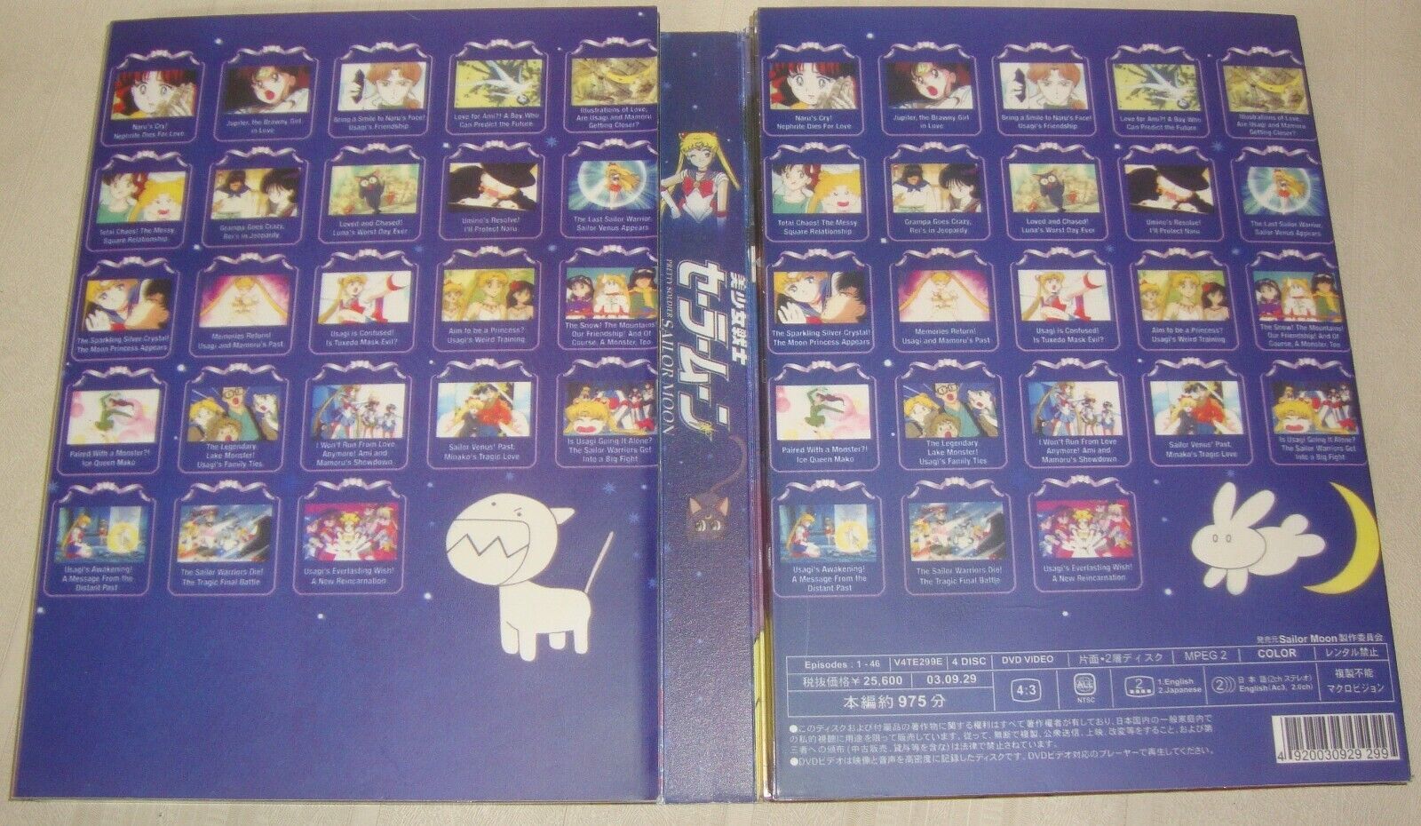 SAILOR MOON 46 Episodes 4 Discs DVD Episode 1 -46 The Perfect Collection uncut Edition Japanese with English Subtitles MISSING VINYL SLIPCOVER Please Check Pictures for Better Details What you see in the Picture is what you will receive Any Question, Please feel free to email us at any time DO MY BEST TO ACCURATELY DESCRIBE EACH ITEM LISTED MY PHOTOS ARE THE ACTUAL PRODUCT WHAT YOU SEE IS WHAT YOU GET PLEASE CHECK ALL PICTURES BEFORE YOU USE BUY NOW OPTION
