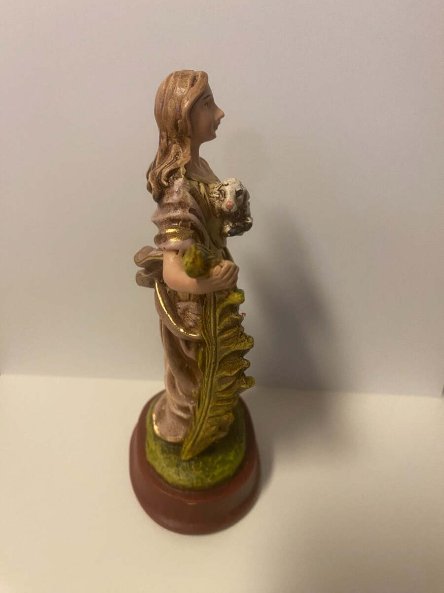 You are purchasing a beautiful 5.50" H statue of Saint Agnes.Comes from the Liscano Collection, made of resin. She is the patron saint of girls, chastity, virgins. She is very well for her martyrdom.