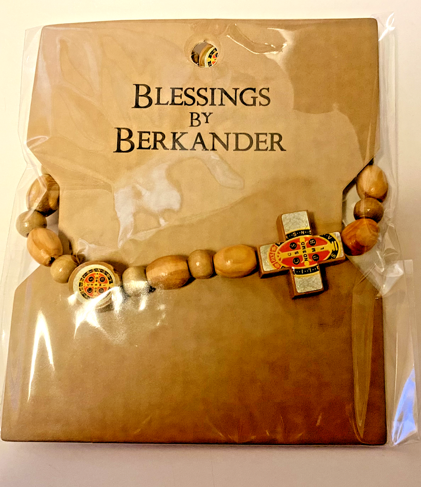 - Saint Benedict Wood Bead Bracelet, New #Gftshp-44