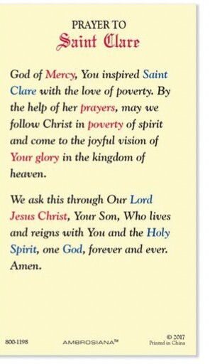 - Saint Clare of Assisi Laminated Prayer Card , New #PCL-28