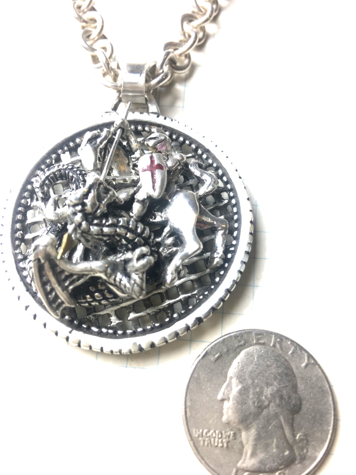 - Saint George and the Dragon sterling silver, 10k Gold accented Medallion