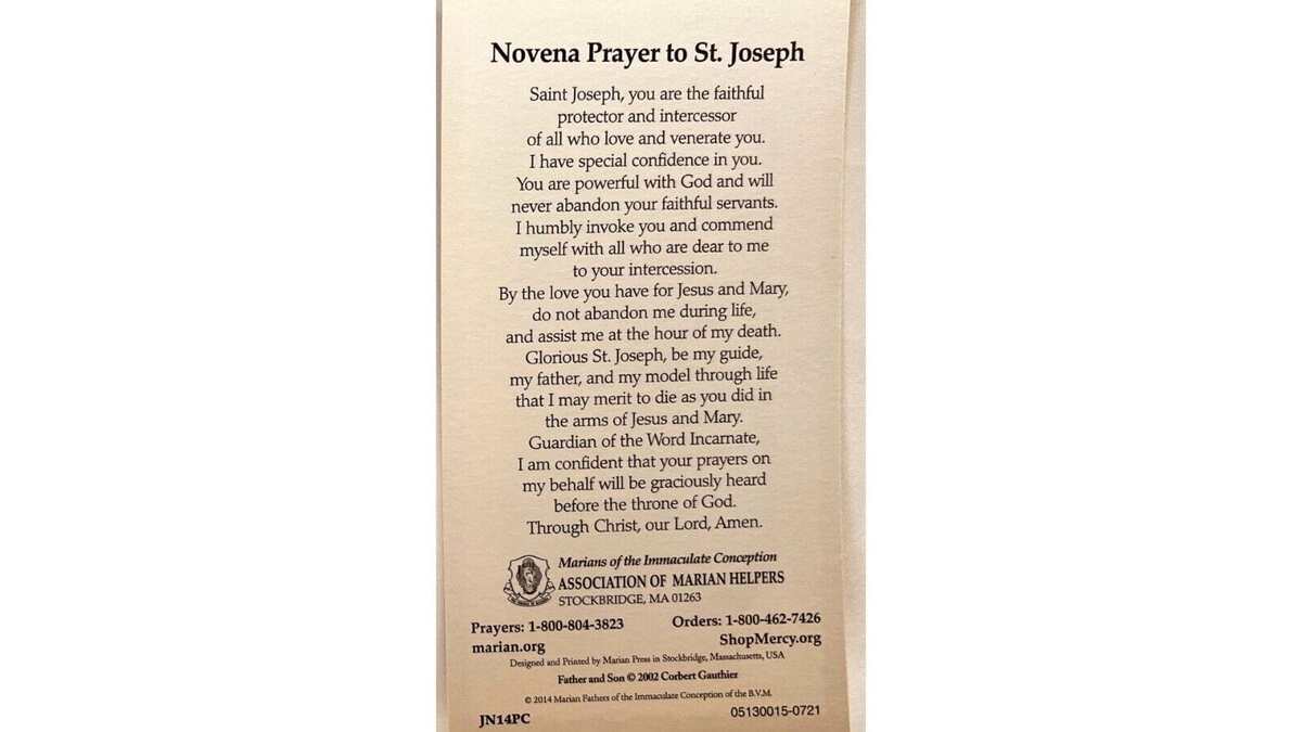 This wonderful Saint Joseph prayer card bears the novena Prayer to St. Joseph on it's back.