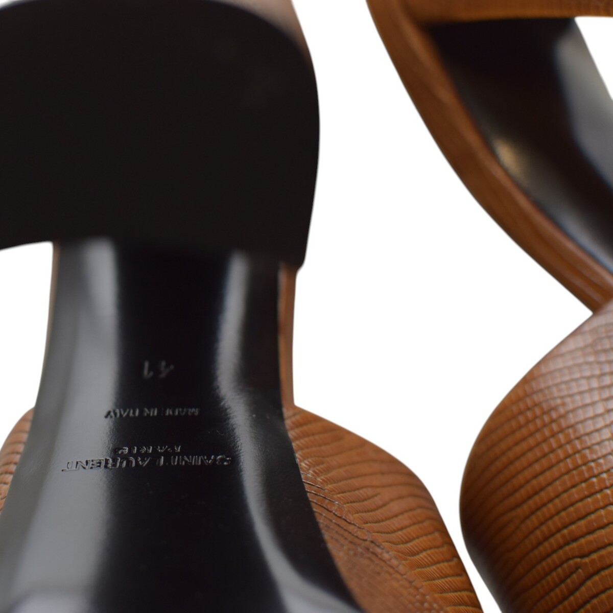 Saint Laurent Boogie 110 lizard-effect caramel brown leather platform YSL mules