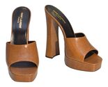 Step into timeless glamour with these Saint Laurent Paris platform mules, crafted in luxurious brown lizard-embossed leather. Their bold sculptural block heel and open toe design channel the brand?s signature 1970s inspiration ? effortlessly balancing elegance and attitude.