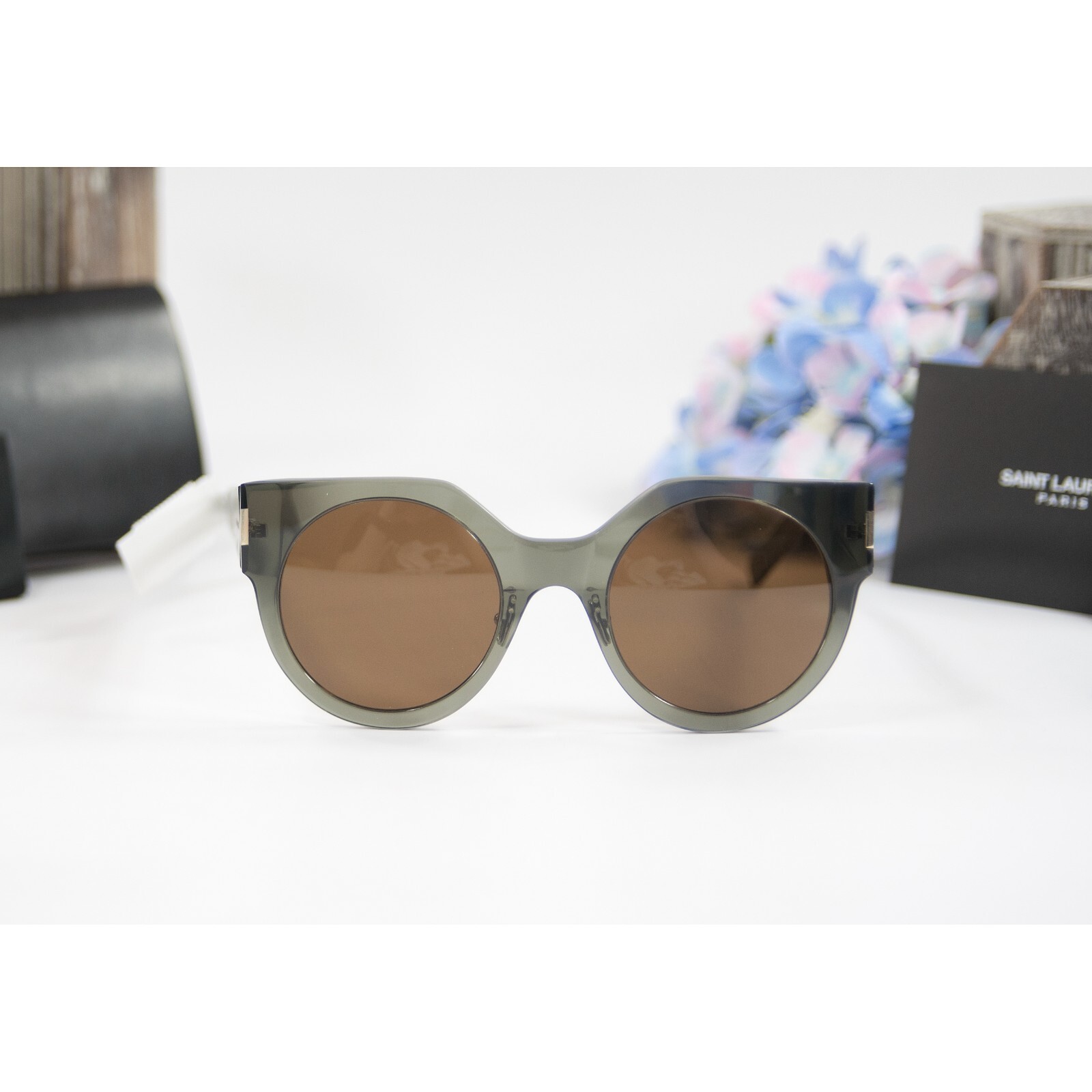 - Saint Laurent SL185 Grey Logo Acrylic Round Sunglasses NWT Case