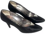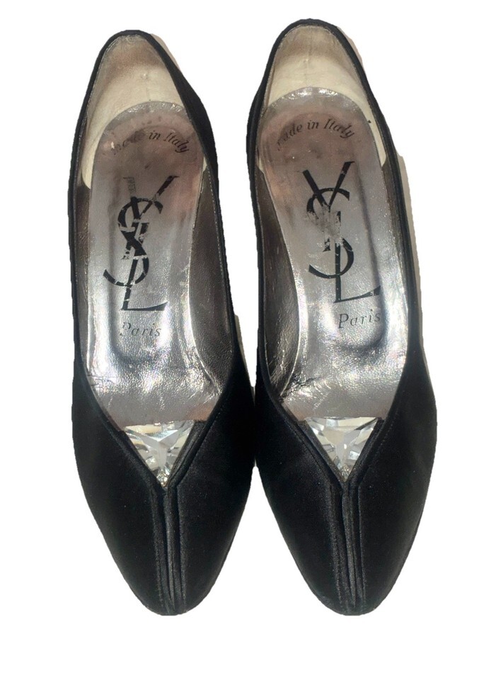 Vintage Saint Laurent YSL Black Sparking Crystal Embellished Satin Evening Heel Shoes in size 8M