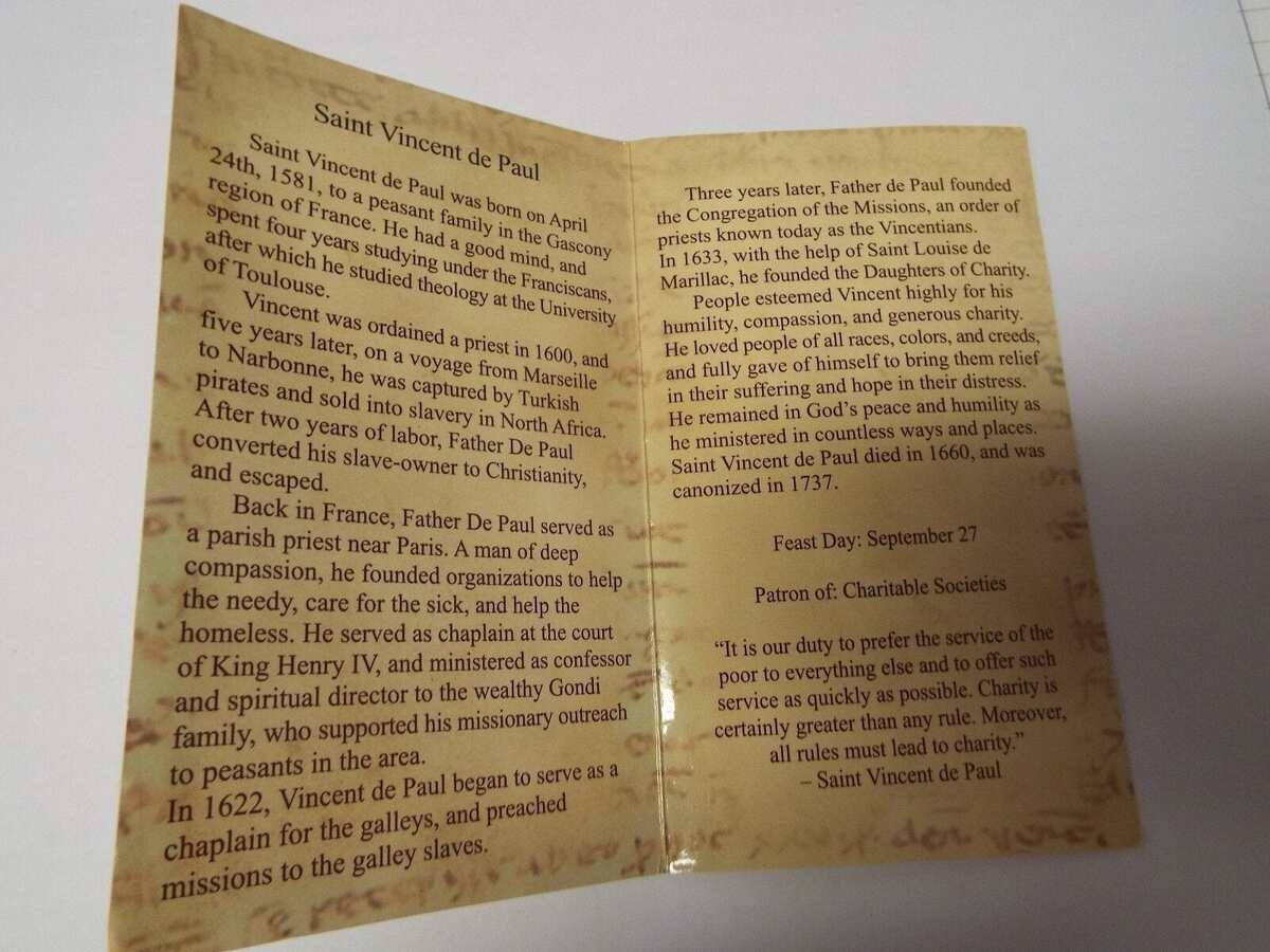 - Saint Vincent de Paul Biography & Prayer Folder, New