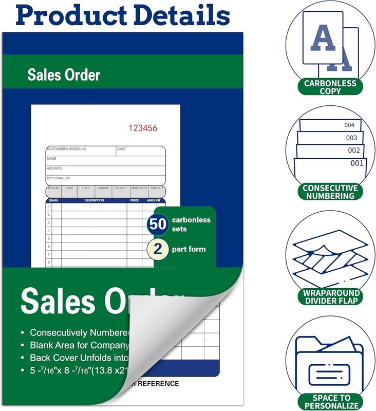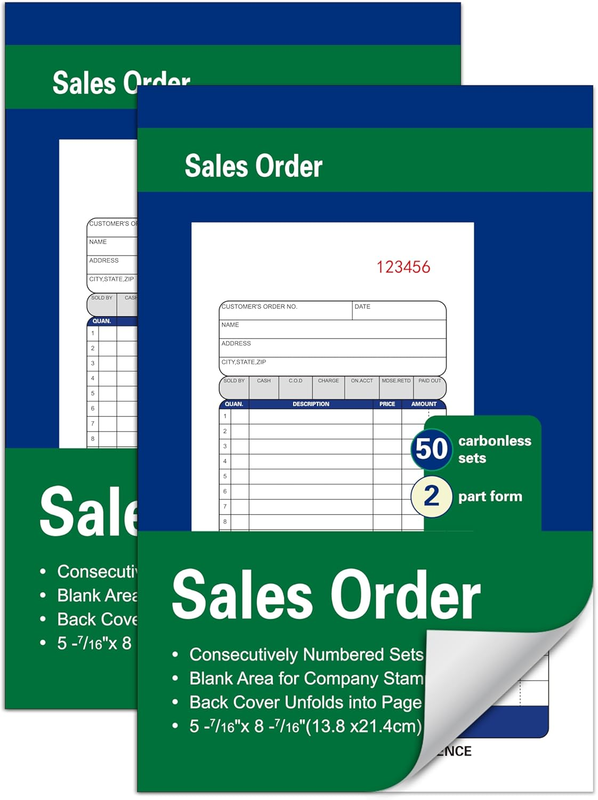 Primary image for Sales Order Books,50 Sets,5-7/16 X 8-7/16 Inches,2-Part Carbonless Copies