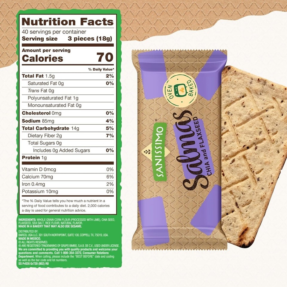 - Salmas 40-Pack Oven Baked Corn Crackers with Chia & Flaxseed: Delightful Snack