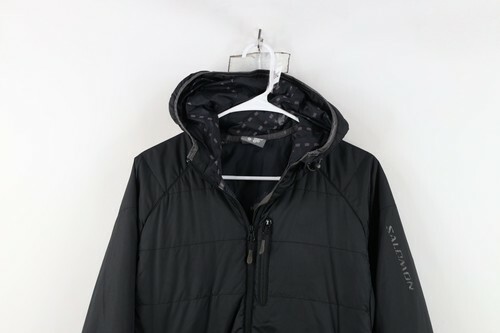 - Salomon Womens Size Large Spell Out Outdoor Keystone Hooded Puffer Jacket Black