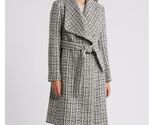 Sam Edelman Tweed Drape Lapel Wrap Coat, Natural Tweed, Black Gray Size 8, NWT