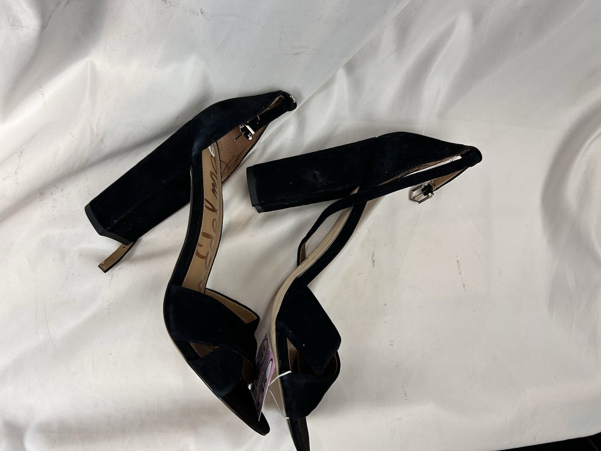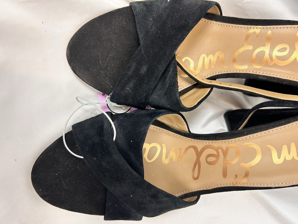 - Sam Edelman Yaro Black Suede Block Heel Sandals Size 11 Ankle Strap Open Toe