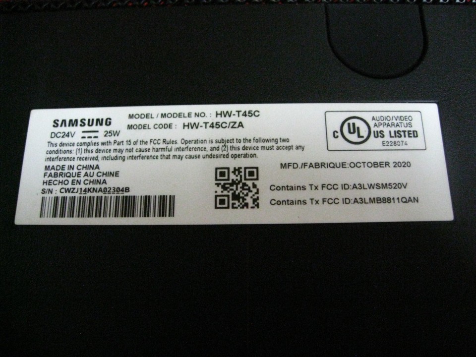 Samsung HW-T45C Replacement Soundbar Only, (NO REMOTE, but has basic button son unit ) Tested Works Great, Has Some cosmetic tested on the HDMI input , works great!. ONLY WHAT IS SHOWN IS INCLUDED no mounting hardware, no remote MODEL NUMBER(S) MARKED ON THIS ITEM IS: HW-T45C DIMENSIONS of THIS ITEM (In APPROX INCHES) ARE: 34x3.5x2 Z Long (Deep) x X Wide x Y High Approx. Unpacked net weight: 5lbs 6.2oz WHAT WAS TESTED ON or WITH THIS SPECIFIC ITEM: Plugged into power and audio WHAT WE FOUND:* Works well, plays audio, buttons work. *To assist our buyers, we test most items before listing as noted above. This is only to guide you as to what we experienced and does NOT guarantee the same results when used in your situation or with variables at your end. ----------------------------------------------------------------------------------------------------- SAFE, HONEST SELLER? See our HIGH FEEDBACK and bid confidently! SEE OUR OTHER LISTINGS AND STORE ? THERE MAY BE MORE OR SIMILAR DEALS YOU DID NOT THINK TO LOOK FOR! QUESTIONS: · Ask all questions BEFORE purchase: we are sometimes out of town a few days at a time and many weekends. We usually answer emails within a few days, often the same day, but NOT ALWAYS. SHIPPING POLICY: · COST : Click on the "Shipping and Payments" tab on this page and enter your zip code to find shipping cost or options available for this sale. · SHIPPING CHARGES are NOT NEGOTIABLE AFTER YOU BID (OR on ANY "Best Offer"). We generally use only the shipping options shown, unless agreed otherwise BEFORE purchase. We reserve to choose shipper and service of similar delivery time chosen. · We generally do NOT use COD, 3rd party, or bill to account numbers. If we do, there will be a $10 handling fee for time spent processing · UPS is insured and trackable along the way. · US Postal is not as easily trackable- generally shows pickup and delivery only. SHIPPING ARRIVAL TIMES: · We generally ship items within same day or up to 1 - 5 business days depending on our schedule, then it takes an additional 2-6 BUSINESS DAYS in TRANSIT, depending on your location, so it may take 1-2 weeks before your item arrives. If you need it faster, ASK PRIOR TO BIDDING so we can accommodate your time frame. We do NOT accept returns because of "item no longer needed," "took longer than expected," etc. SHIP TO ADDRESS: · We Ship to/PayPal listed buyer address ONLY; We do NOT ship to a different address. If you want it sent elsewhere, you must add another address to your PayPal shipping address FIRST and then select it when paying for the item. It is YOUR responsibility to ensure your address is up to date prior to bidding. Incorrect address, multiple addresses, change of address, failure to sign for the package, causing reshipping/re-routing will be at the BUYER'S expense COMBINED SHIPPING: · automatically combines purchases made at same time (add to cart then checkout) otherwise, ask BEFORE bidding as sometimes the shipping calculator goes crazy on listings when you type in multiple quantities due to unknown packaging factors or the inability to figure cheapest way in one box. Contact us with the zip code if the shipping price does not reduce for quantity BEFORE bidding. INTERNATIONAL: · INTERNATIONAL SHIPMENTS TAKE LONGER, SOMETIMES 2-4 WEEKS, CHECK ESTIMATE ON CALCULATOR BEFORE BIDDING - DO NOT BID IF IN A RUSH! · DUTIES: Any duty, tariffs, taxes, brokerages, or any other fee added at your end are sole responsibility of the buyer. We do not declare false values as this would violate policy. · CANADA buyers note, UPS or USPS may add duty or brokerage fees, please check with carrier prior to bidding, as you must pay these fees directly to carrier to receive your item. We do not set, get involved with, negotiate, or pay these fees ever. LOCAL PICKUP: · We are located in Owego, NY (Near Binghamton) just off of Rt. 17/I-86 (approximately 3 hours from NYC, Rochester, Albany, Buffalo, Philadelphia; 2 hours from Syracuse; and 4 hours from Lancaster, Pittsburgh, Harrisburg). · Some sellers charge a pickup fee. Our fair policy is this (unless stated otherwise in ad): Pickup is ONLY available Mon. - Fri. 9-5 (NO weekends; we do not stay late or come in early). You must let us know ahead of time when you can come and then receive acknowledgment that we have item ready for pickup as some items are in off site storage. Prepay (PayPal) or bring cash on pickup (CASH ONLY, No checks!) On some large items, you can prepay and we can set item outside for you to pickup at your convenience. Unless other arrangements are made, pickup is due within 2 weeks of the end of auction. $10/week storage fee thereafter. · NO PICKUP FEE IF YOU WALK IN, PAY, WALK OUT WITH ITEM. · $10 PICKUP FEE IF YOU NEED US TO EXPLAIN YOUR ITEM TO YOU, HOW TO USE IT, TEST / DEMONSTRATE IT, OR HELP YOU WRAP, PROTECT, BOX, PACK OR LOAD IT IN YOUR VEHICLE OR OTHER USE OF OUR WORKERS' TIME/MATERIALS. PAYMENT and NON PAYMENT: · Payment is due within 10 days of auction end. Do NOT bid if you will not be able to pay the full amount of the auction and shipping within 10 days. We do NOT cancel transactions. We DO file a non-paying bidder report on all non-paying bidders. FEEDBACK: · We usually leave positive feedback for all positive transactions for which we receive feedback and prompt payment. However, due to our volume, we often wait a few weeks and do a bulk amount at one time. Buyers who harass or "nag" us for feedback may not receive positive feedback GUARANTEES and RETURNS: · UNLESS LISTED OTHERWISE in description: all items sold as-is, all sales final, no returns, no refunds, no partial refunds. Unless noted otherwise, used items are sold as-is, no guarantees. See our feedback-we are fair sellers, but this is a liquidation site. If you need return privileges and warranties, please support your local stores that may offer such options. · Items do NOT include anything other than what is listed or pictured. Do NOT assume you ar