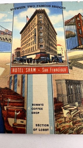 - San Francisco CA-California, Hotel Shaw, Between Bridges, Vintage Postcard