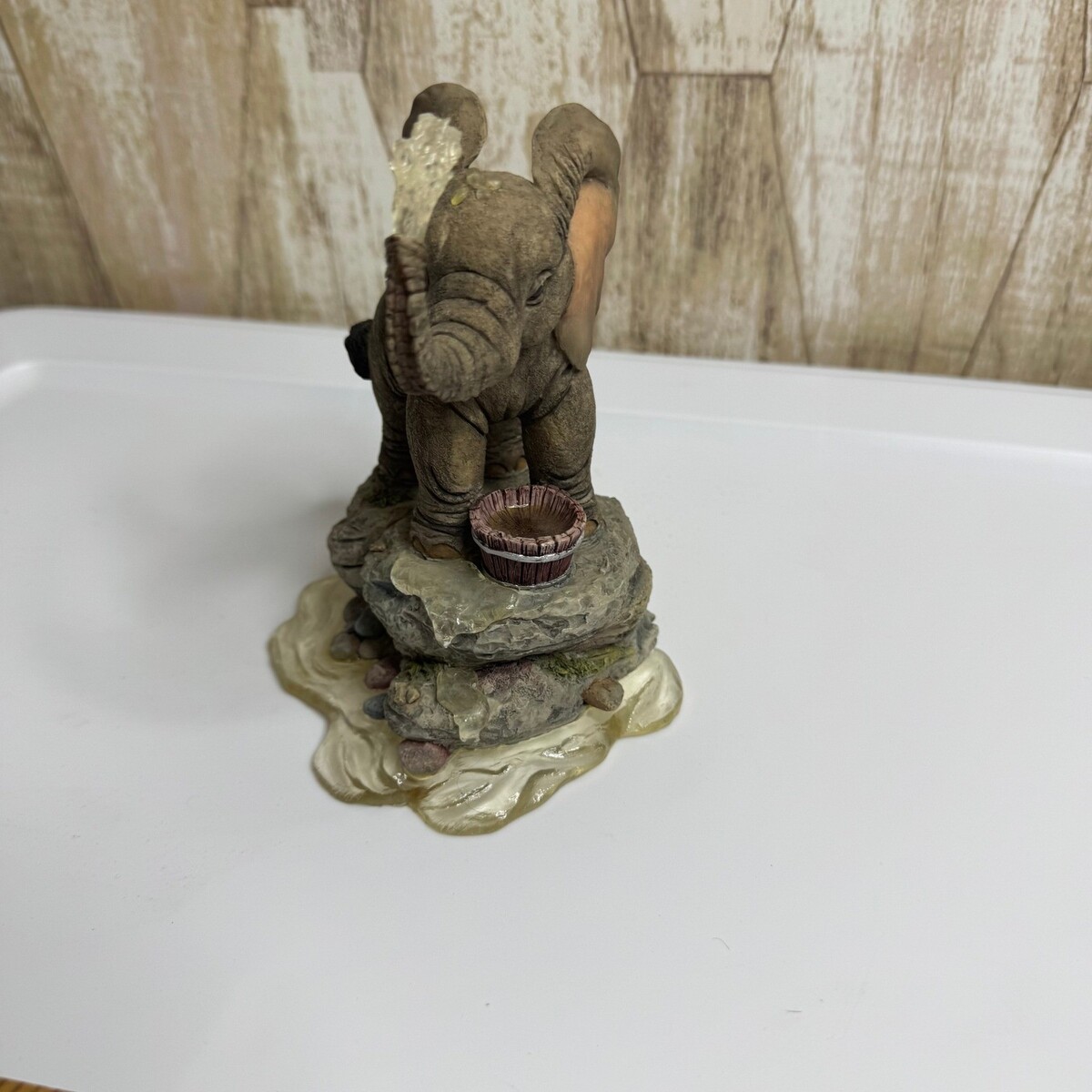 No issues Approx. 6" height and 4.5" across Keywords: music box, elephant figurine, country artists, san francisco music box company, splish splash, resin figurine, water spraying elephant, collectible, home decor, gift idea, decorative item, animal figurine, cute elephant, sound device