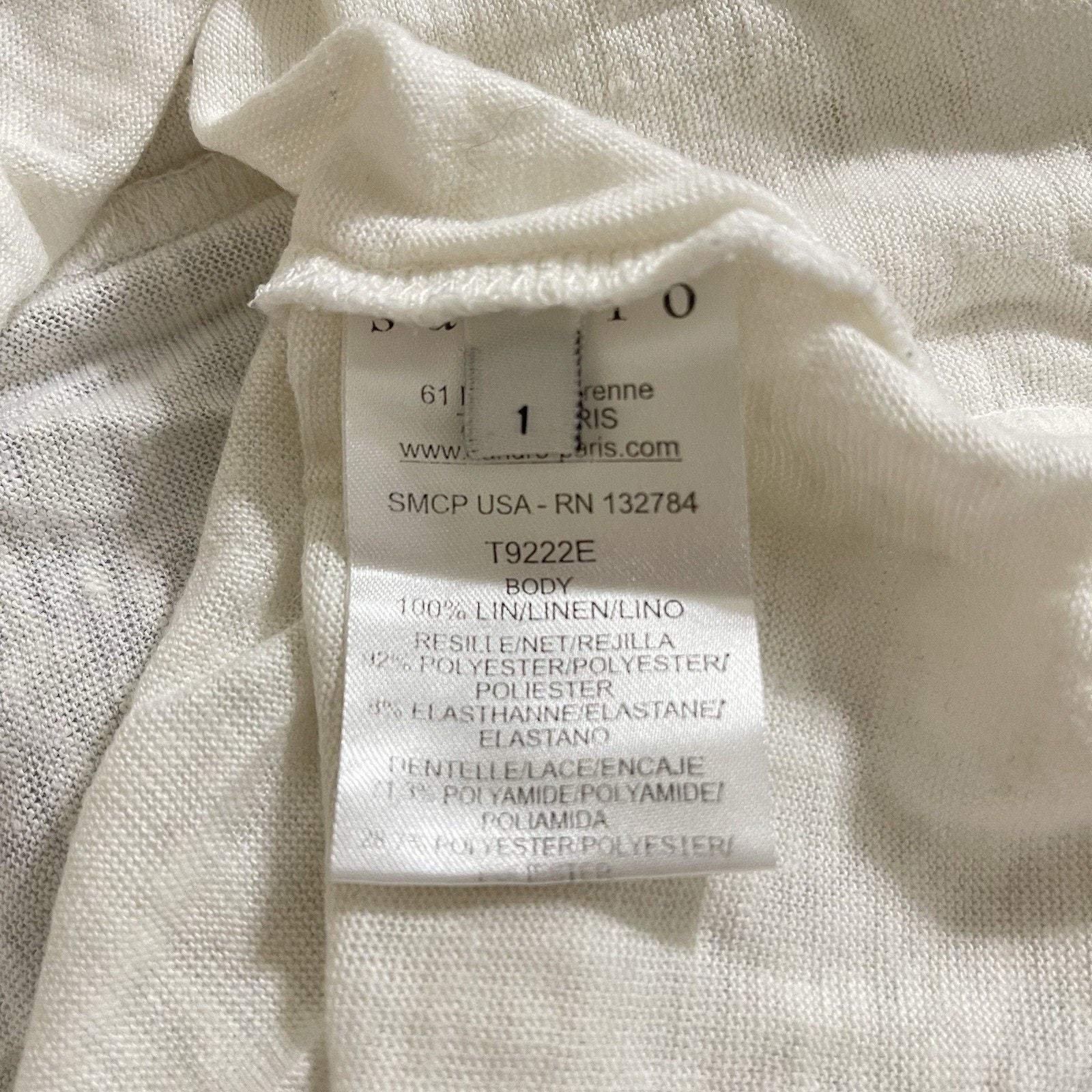 Sandro Paris Linen Lace Mesh Top France Size 1 (US Size 4 Small)