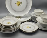 - Sango Dawn Gold Trim Yellow Rose Dinnerware Set 23-Pc Set 1950's