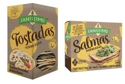 Sanissimo Salmas Salted Oven Baked Corn Crackers Round 216g + 8 Pk. 144g Bundle Gluten Free Non GMO Kosher