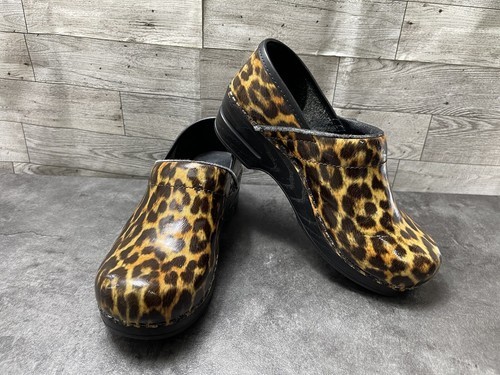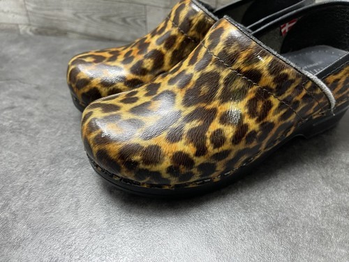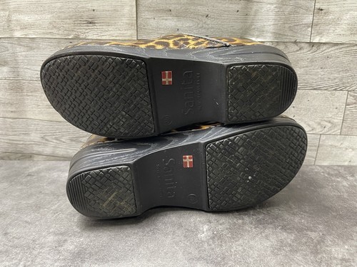 - Sanita Clogs Women 5.5M Shoes Black Patent Slip On Cheetah Professional Nurse