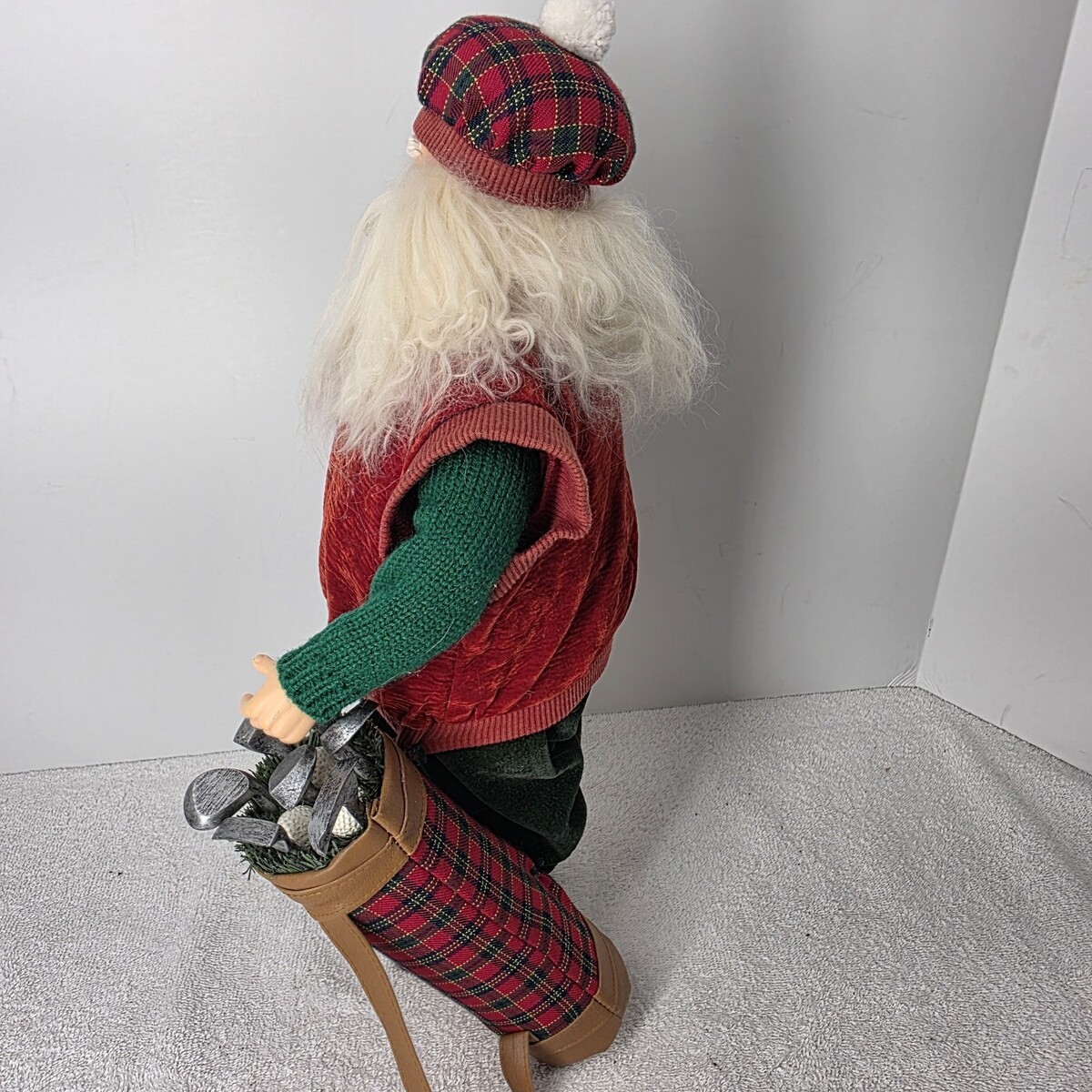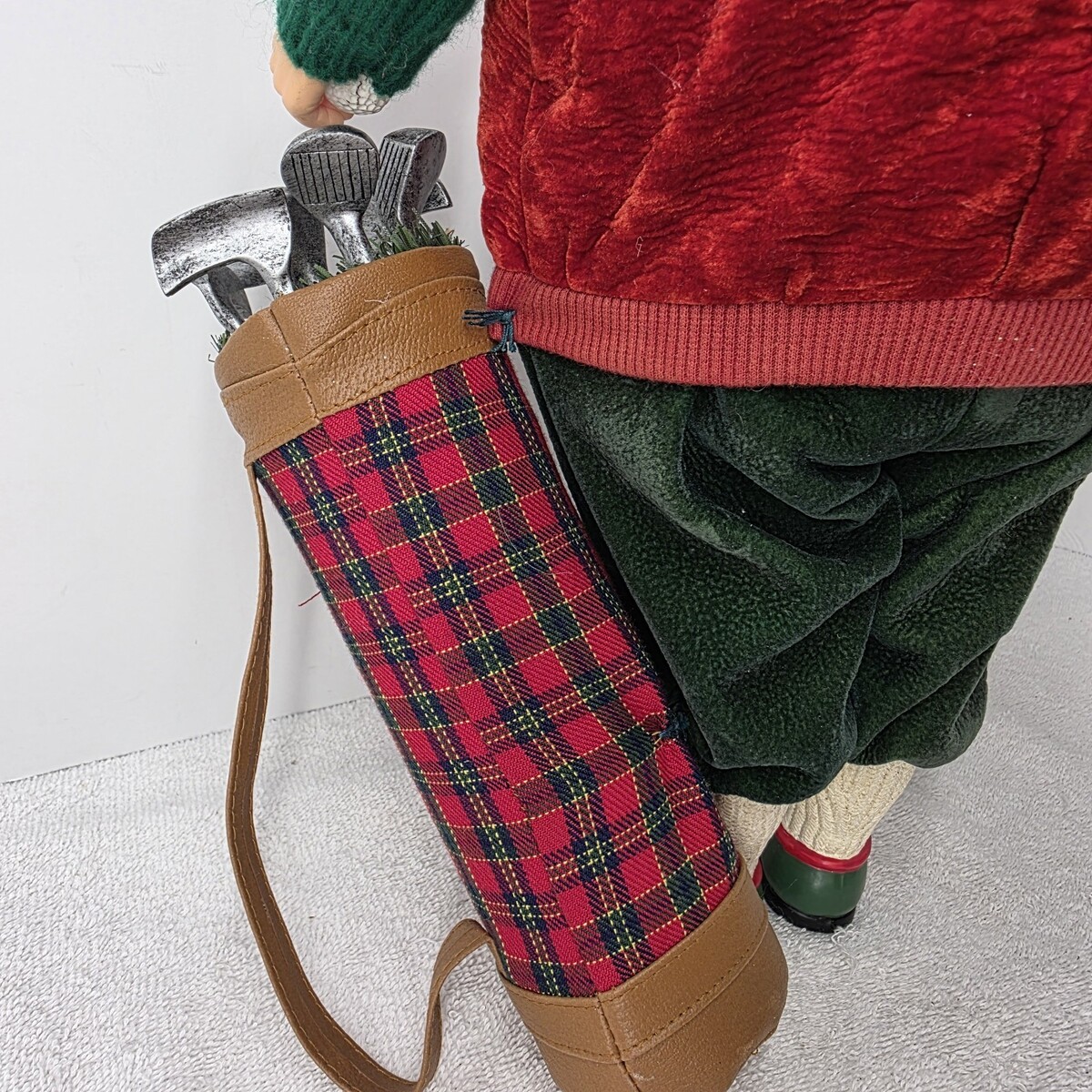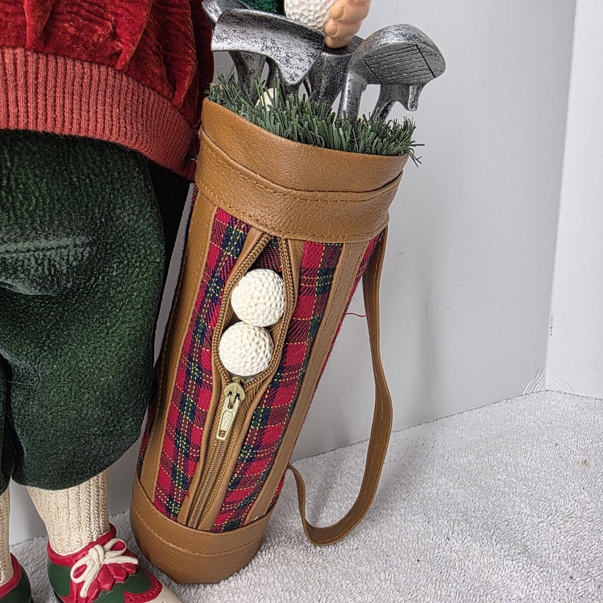 - Santa Figure Golfer 16 Inch Free Standing Vintage Quality Burgandy Green