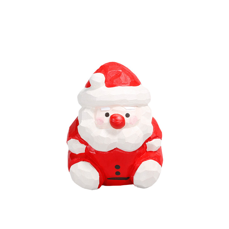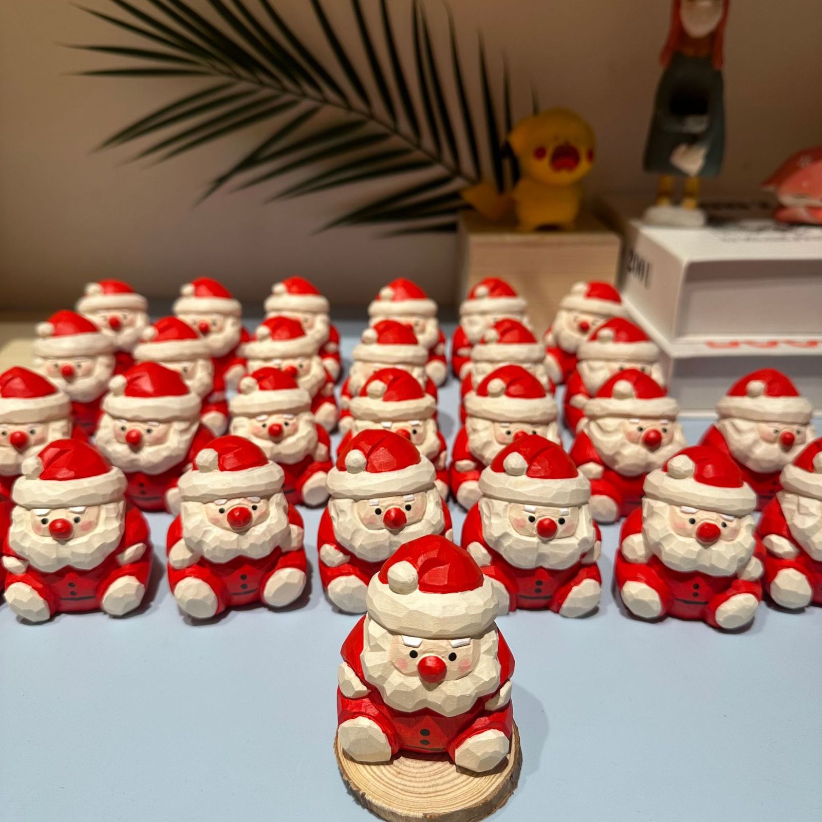 Santa Wood Carved Ornament – Handmade Desktop Decoration