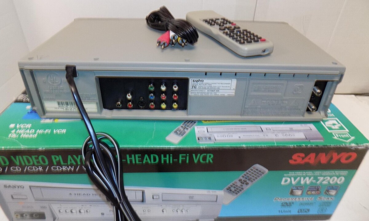 - Sanyo DVW-7200 DVD VCR Combo with Remote, Manual, Cables and Hdmi Adapter