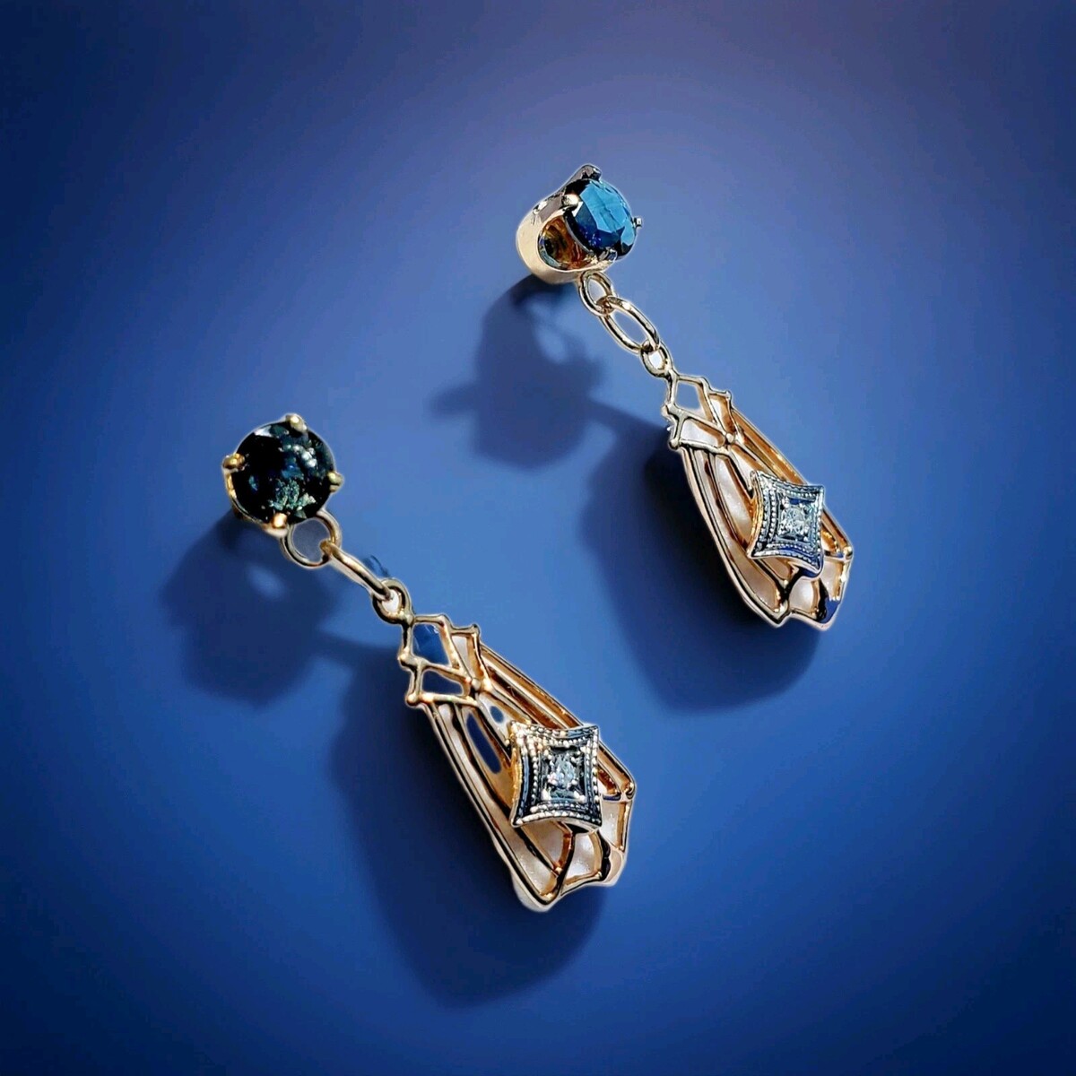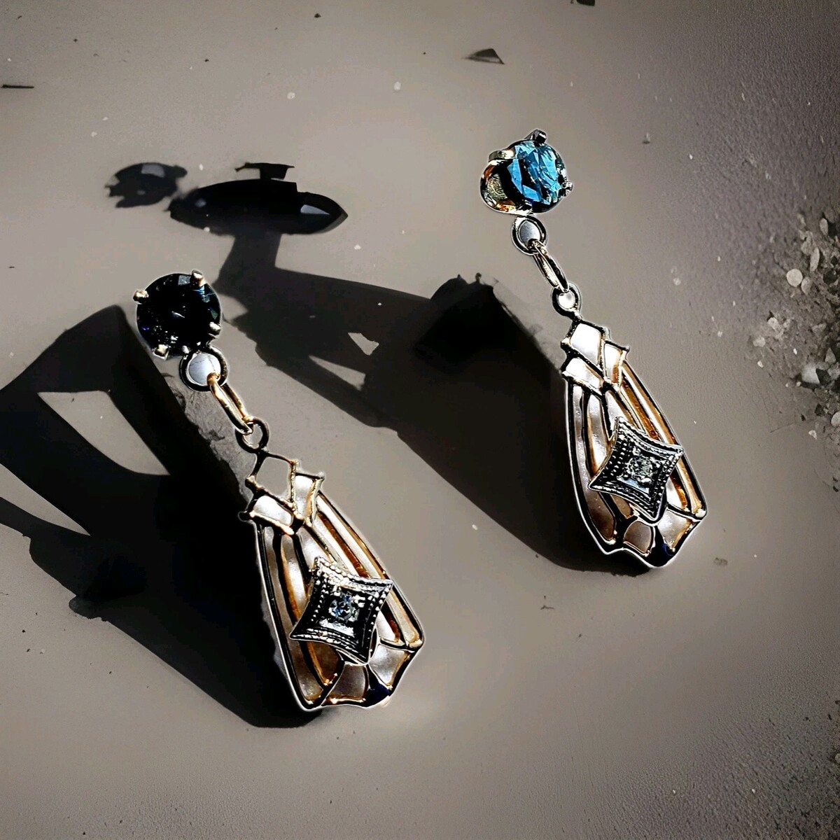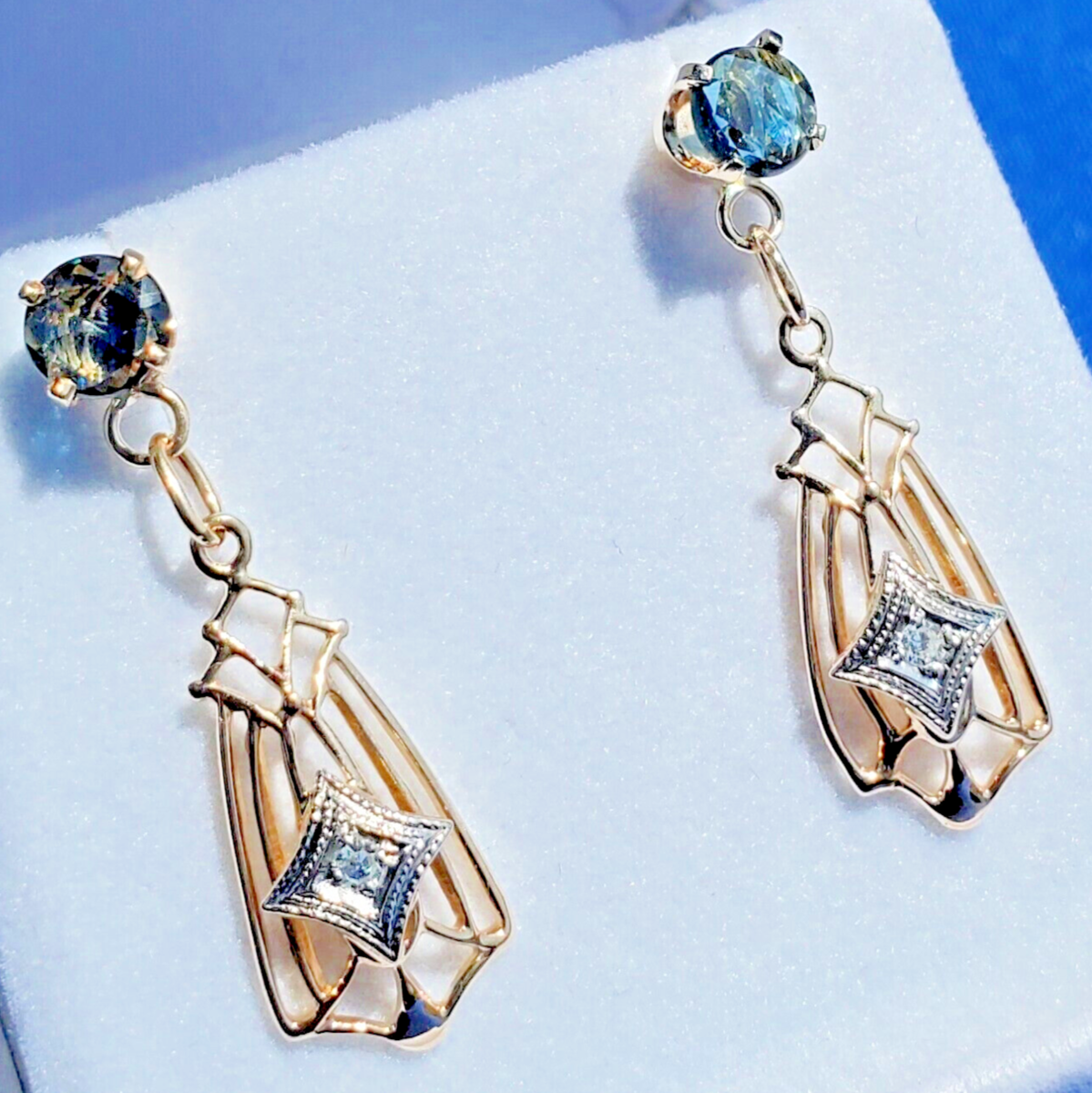 NATURAL SAPPHIRE DIAMOND DECO GATSBY STYLE EARRINGS.