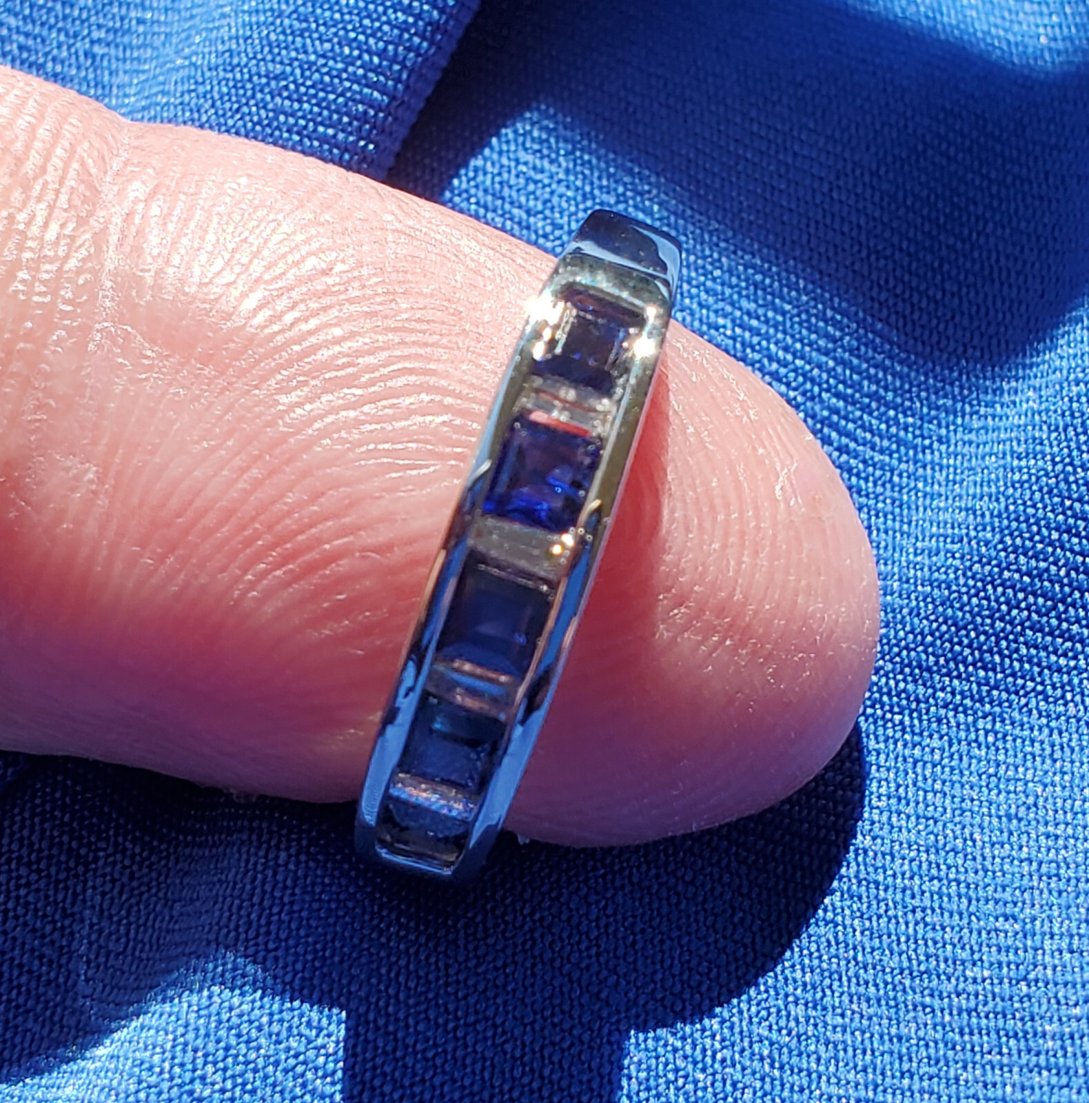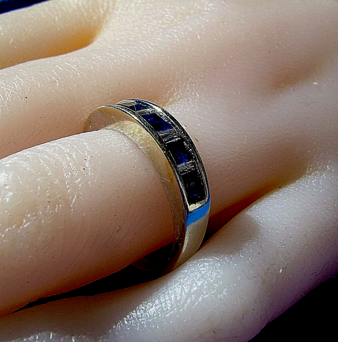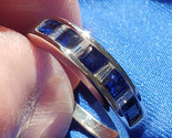 - Sapphire Diamond Wedding Band Vintage Anniversary Ring Solid 14k White Gold 8.25