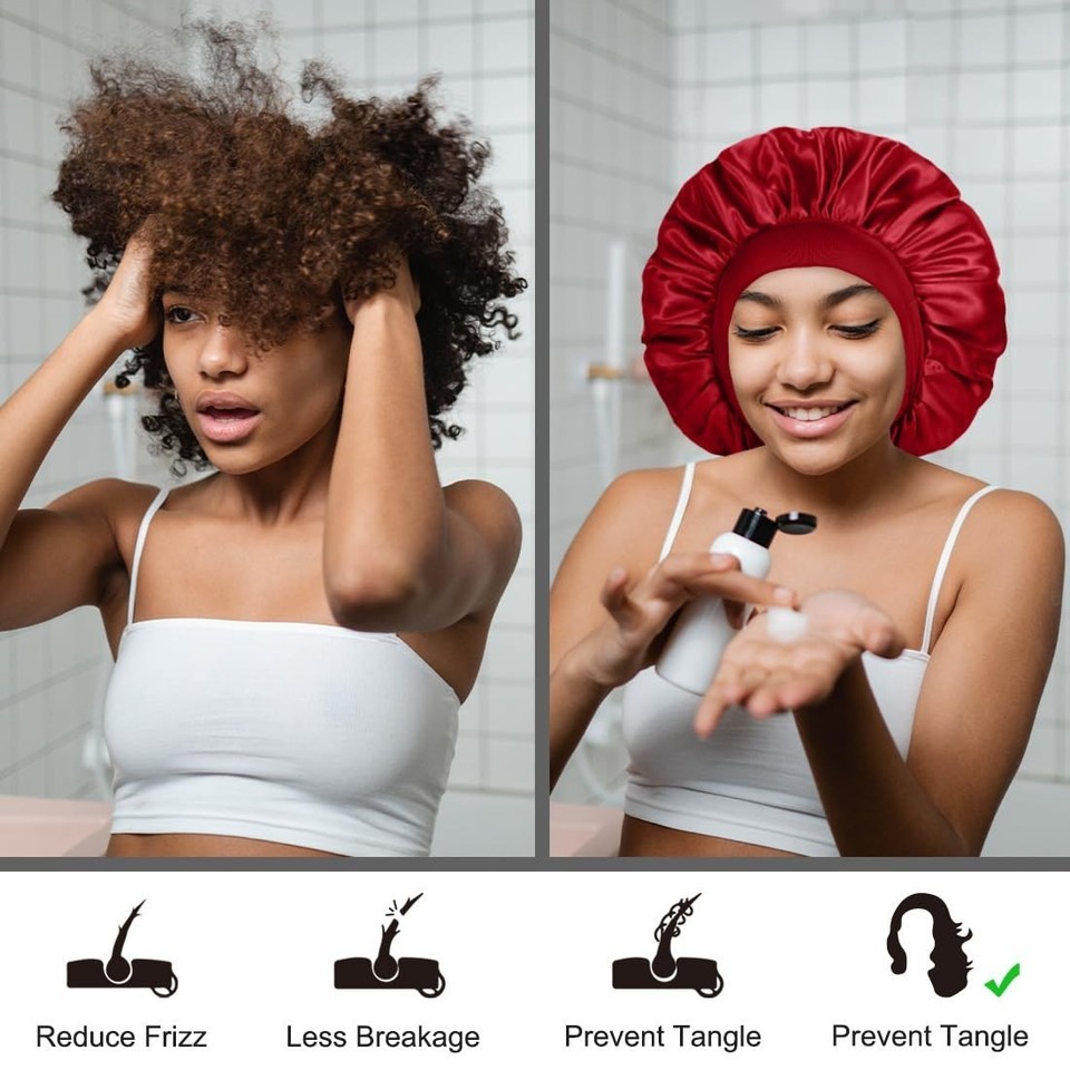 KEEP HAIR SHINY: This silk bonnet is lightweight but breathable, locking in moisture while we sleep and making hair softer and shinier.