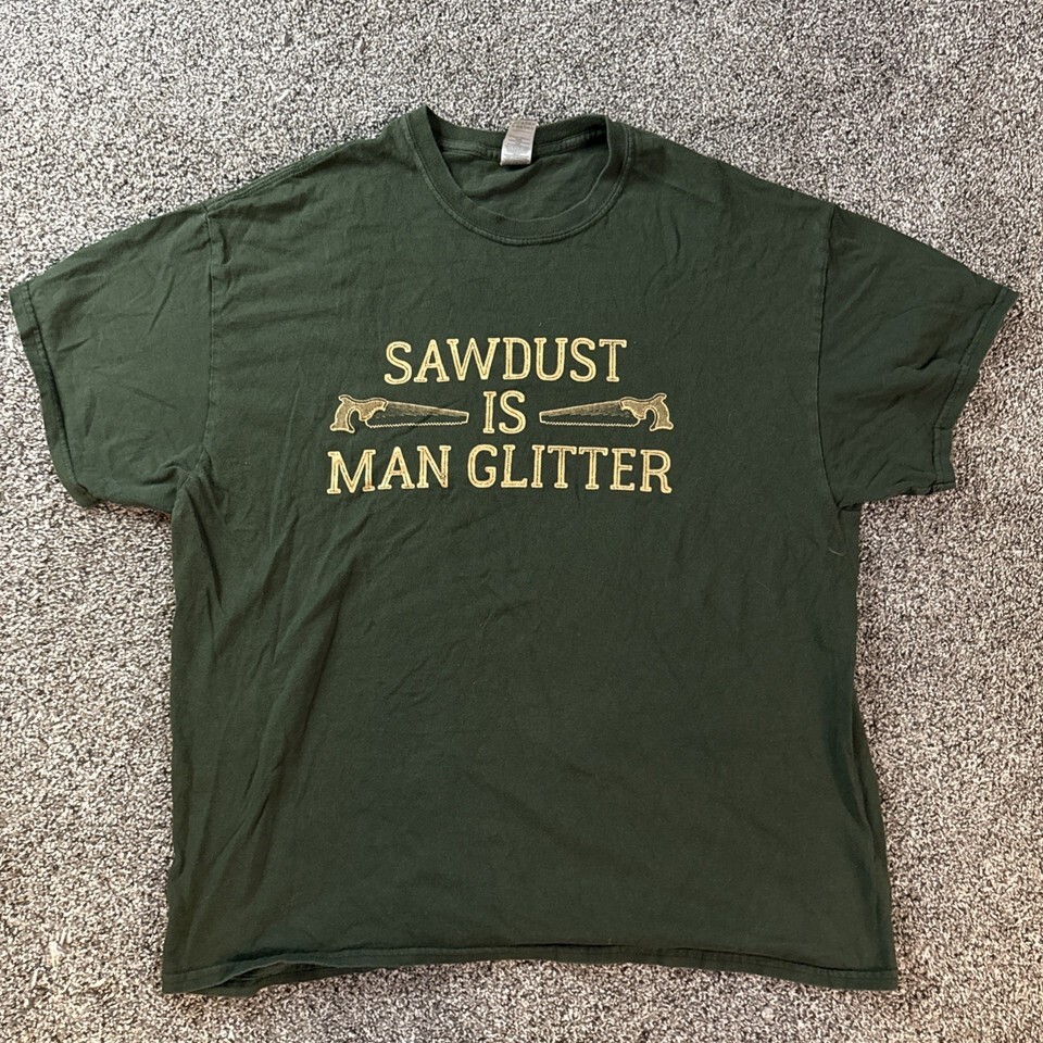 Sawdust Is Man Glitter - XL Men?s T-shirt Tee Green Heavy Cotton . Condition is Pre-owned - Good. Shipped with USPS Ground Advantage.