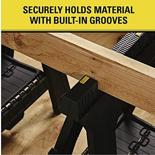Flat-folding and free-standing, these sawhorses create an instant setup for skilled or amateur carpenters. Built-in v-grooves hold your materials in place for precise cuts while rubber feet provide you a steady base that won't slip while you work.