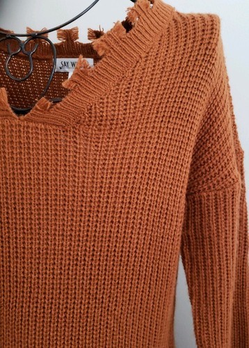 This sale is for one (1) Say What? Brand Dress Women's Size Small Rust in color Measures approximately 38" from shoulder seam to hem edge Measures approximately 21" from armpit to armpit Measures approximately 20" from shoulder seam to end of sleeve 100% Acrylic Pullover dress Long sleeve This dress is brand new with tags Please view items for a good description of this dress Thank you!