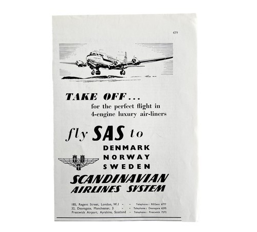 Scandinavian Airlines System SAS 1952 Advertisement UK Import Aviation DWII8