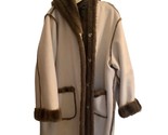 - Scandinavian Faux Fur Winter Coat Reversible Hooded Beige Brown Shearling Sz L