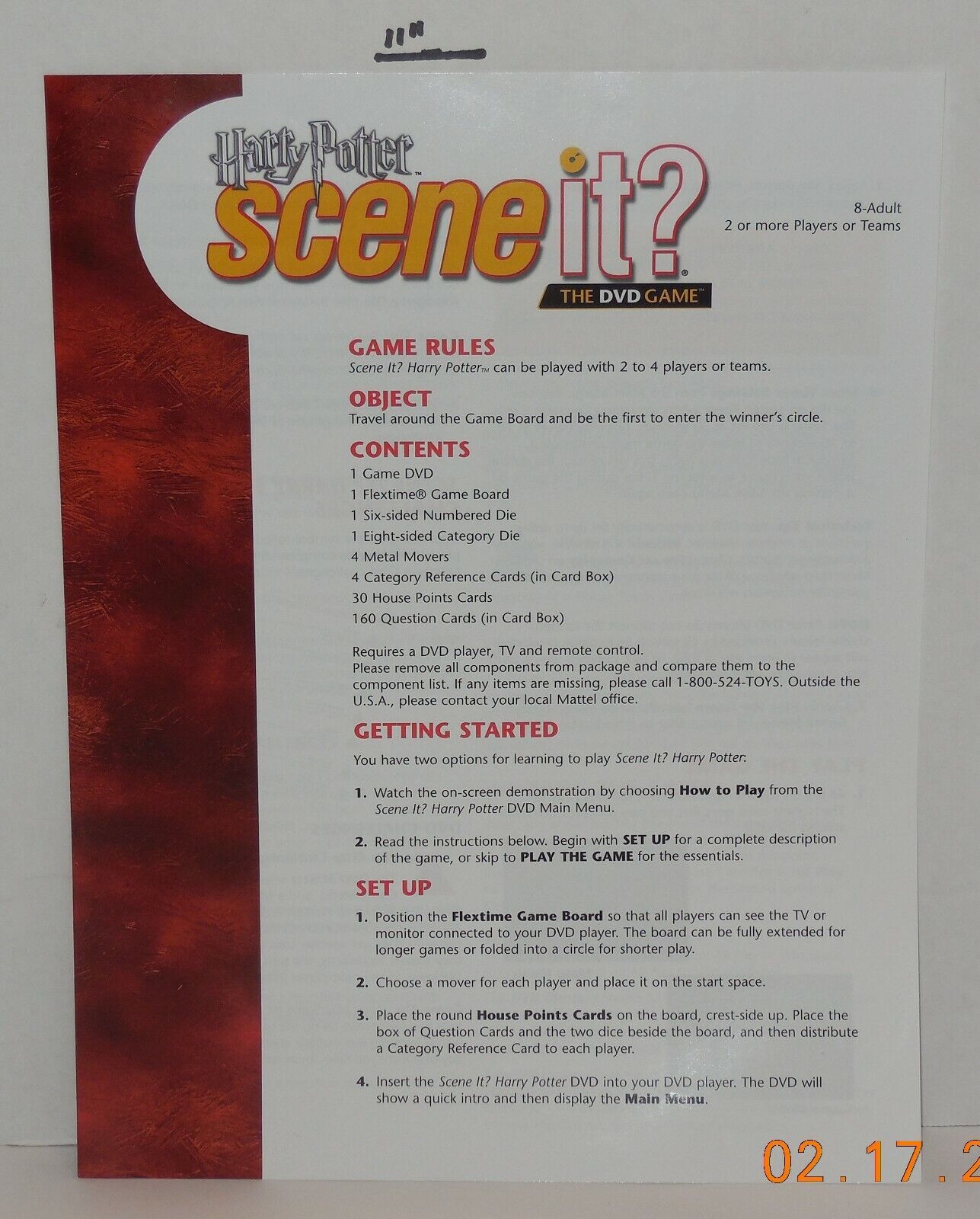 Scene it Harry Potter Edition DVD Board Game Replacement Instructions
