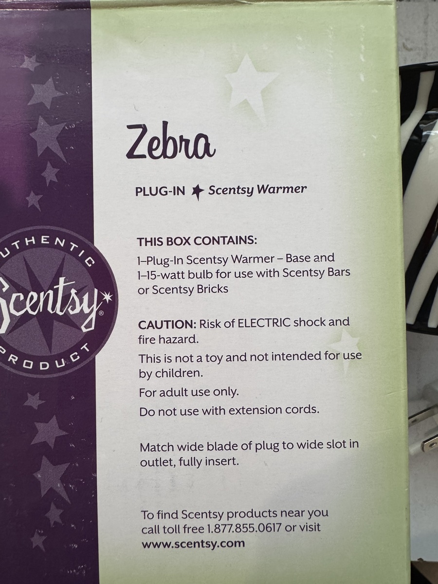 Stylish Scentsy zebra print plug-in warmer. Perfect for adding a touch of elegance to any room