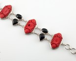 Schöne Sterling Silber Zinnober Und Onyx Knebel Armband