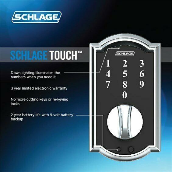 You are Buying a brand New And Factory Sealed Schlage BE375-V-CAM-619 Camelot Keyless Touch Deadbolt.