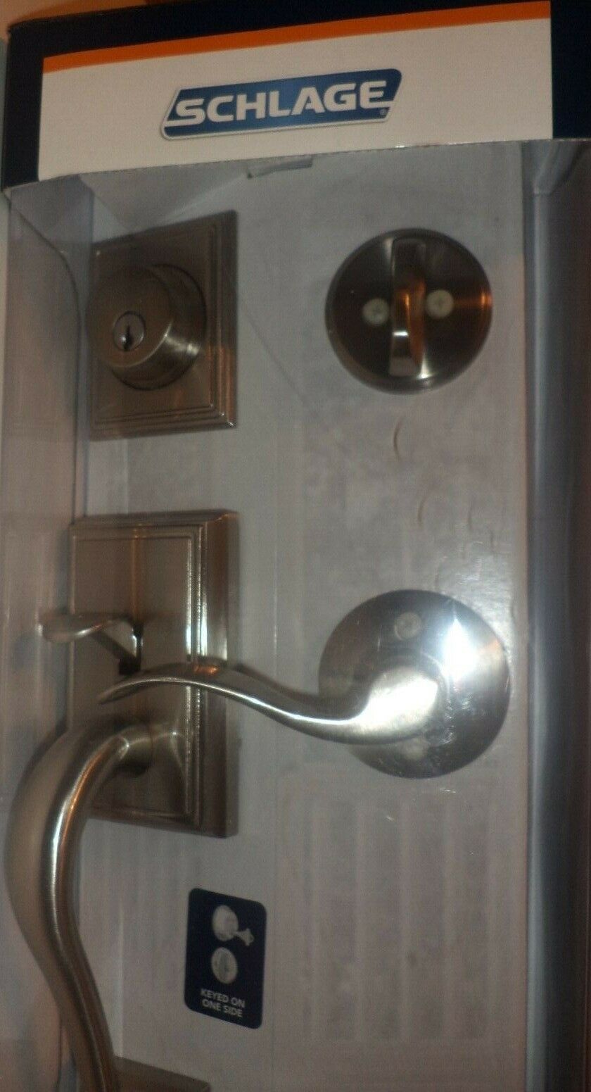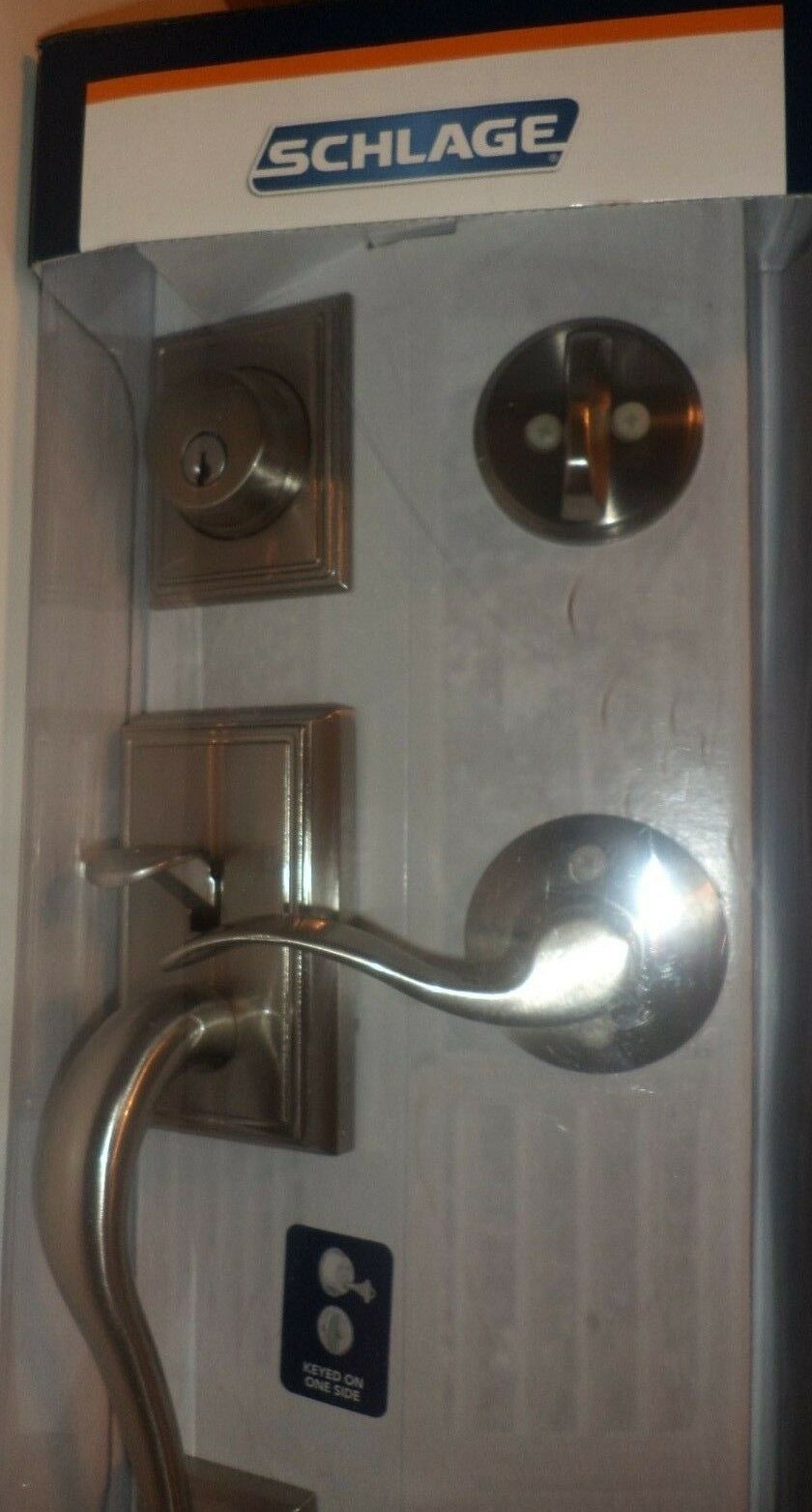 You are Buying a Brand New And factory Sealed Schlage Latitude Satin Nickel Century Trim Single Cylinder Handleset Lever. F60 V CAM 619 ACC