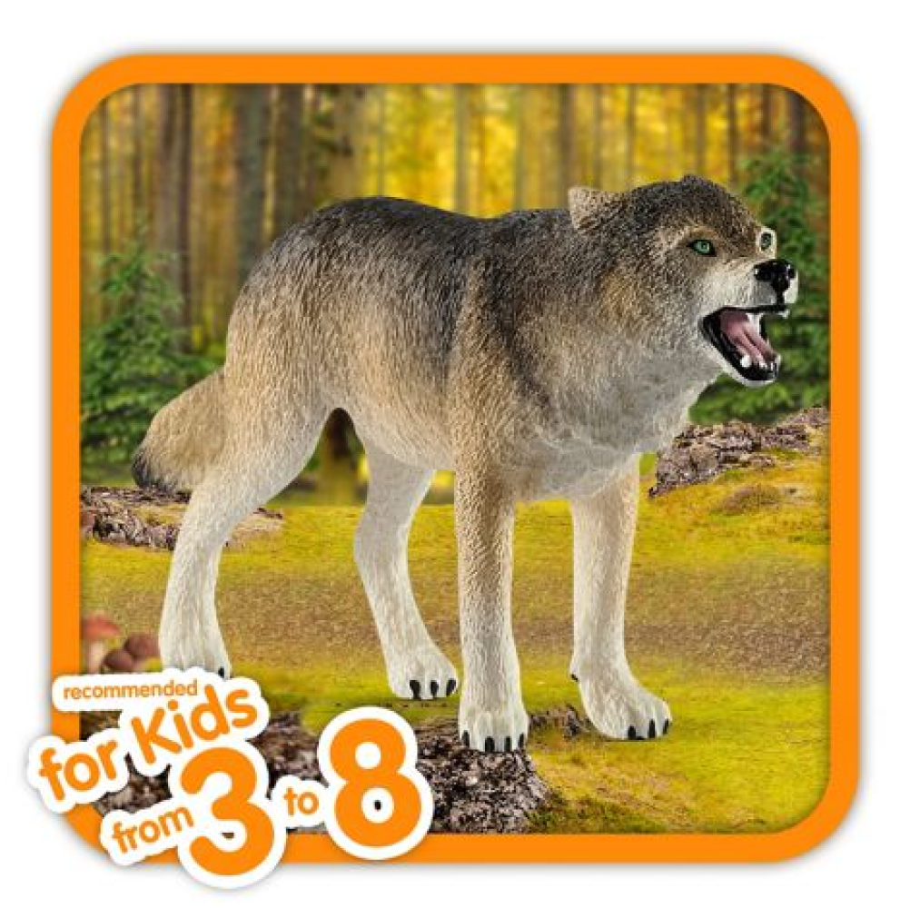 DETAILED REALISTIC. Crafted with precision and authentic detail to create a lifelike toy that teaches and inspires toddlers and kids; helps introduce children to animals. From the first sketch to the intricate finishing touches, we see value in every detail. HEALTHY IMAGINATIVE PLAY. The Wolf from Schleich is carefully designed to inspire safe and creative pretend play for children as both a single toy or part of a larger collection. PART of A GROWING PLAY WORLD. The Wolf is part of the Wild Life collection of figurines and playsets from Schleich. Great for gifting, this figurine can stand alone or fit into a larger, modular play world. BUILT TO LAST. As an 85-year-old German toy company, we are committed to manufacturing realistic toys with the highest standard of quality and safety for years of durable play and collectability. All products and the materials used meet or exceed the strictest applicable toy safety requirements. EXPERT APPROVED. "Schleich playsets and figurines inspire kids to play imaginatively: an essential part of healthy childhood development so often overlooked in today's fast-paced world." - Dr. Sandra Stone, open-ended play expert