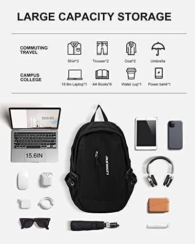 ?Spacious Storage Space?: This backpack measures 50*37*18CM/19.6*14.5*7" (H x W x D), with a spacious main pocket with large compartments for clothes, folders, cameras, mugs, umbrellas and everyday items. The main compartment of this backpack can accommodate a 15.6" laptop.