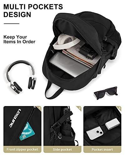 ?Multi-Pocket Backpack?: Both men's and women's backpacks have multiple pockets. The large main pocket can easily store your phone, iPad, computer and other daily necessities. The front zipper pocket can hold your camera,mobile power light, and multiple insert pockets for your daily essentials. The side pockets on both sides can hold water bottles and umbrellas, and the adjustable webbing straps ensure that your items won't fall out.