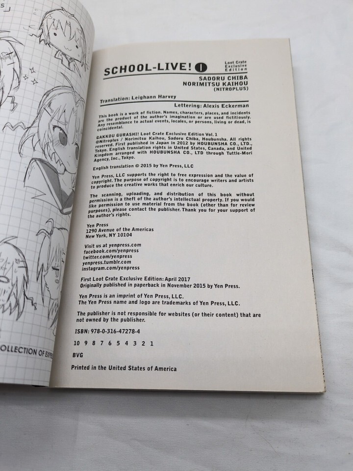 School-Live! Manga Volume 1 Loot Crate Exclusive With Foldout Insert