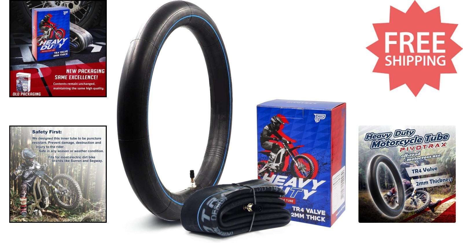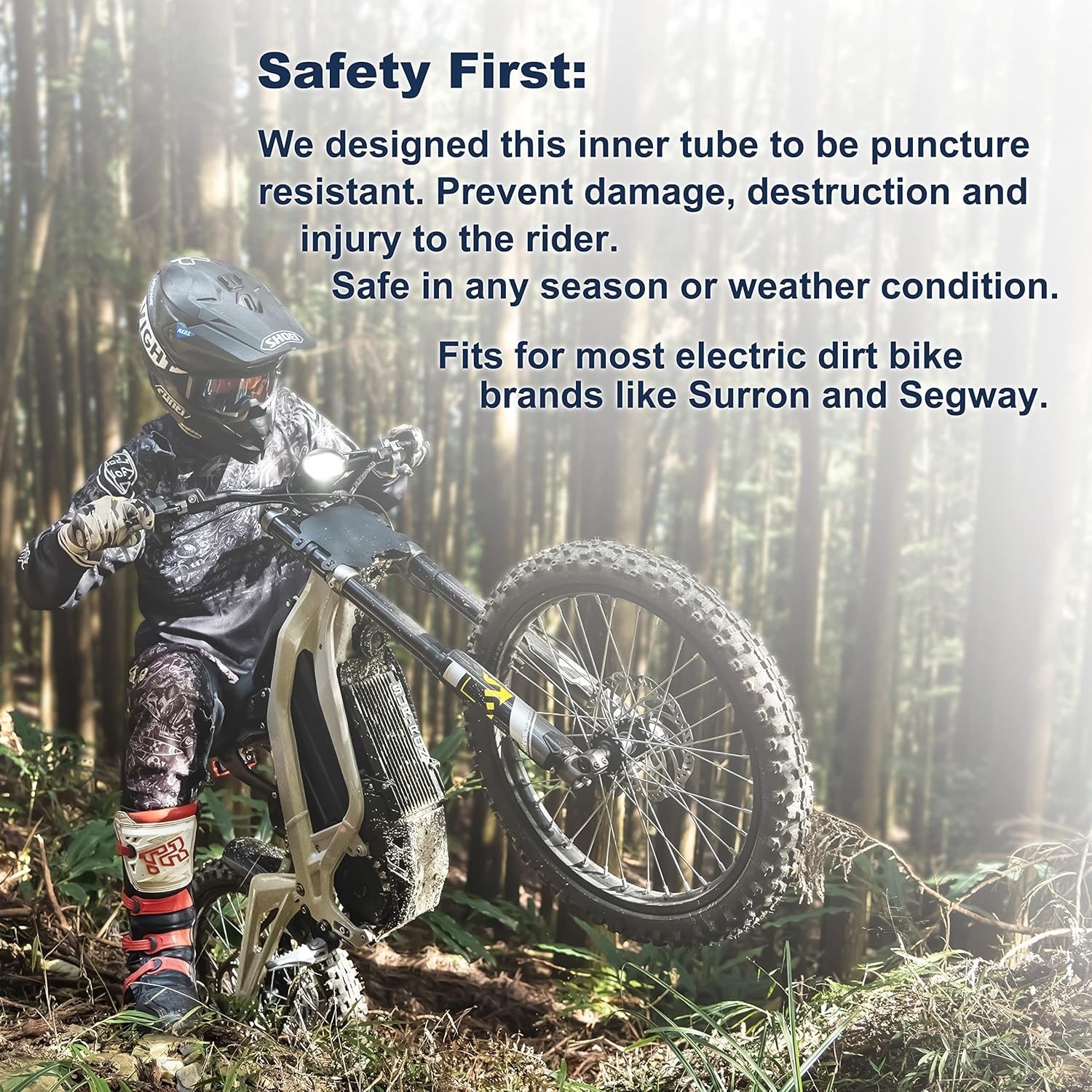Experience enhanced riding safety with our 2mm synthetic rubber inner tube, crafted to absorb shocks and withstand bumps and hollows. Designed for motocross and enduro enthusiasts, it offers puncture resistance and durability to protect you in any weather. Featuring seamless construction and a heavy-duty TR4 valve stem, it ensures reliable performance across most electric dirt bike brands like Surron and Segway. Whether you're riding for adventure or competition, trust our inner tube to support your journey.