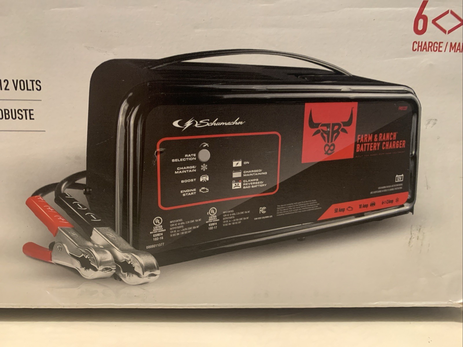 - Schumacher Farm and Ranch Battery Charger 50 Amp- 10 Amp, Box Has Scratches