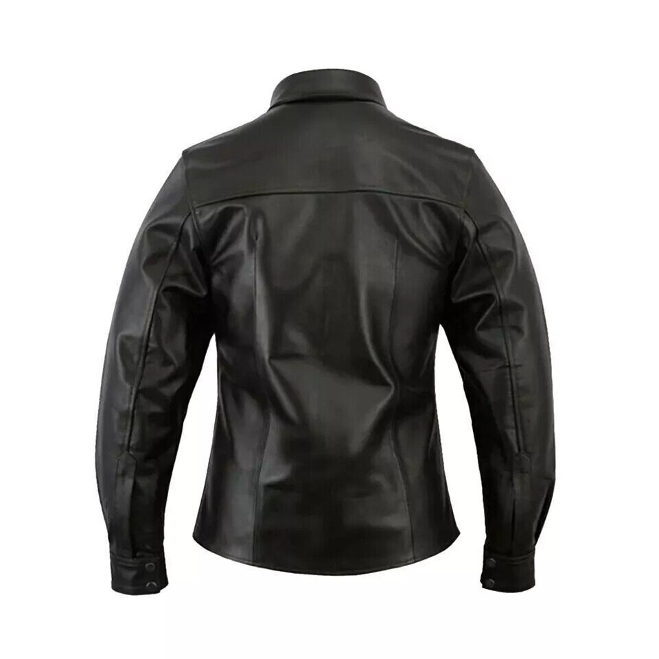 Schwarzes Herrenhemd aus echtem weichem Lammleder handgefertigt Motorrad Frei...